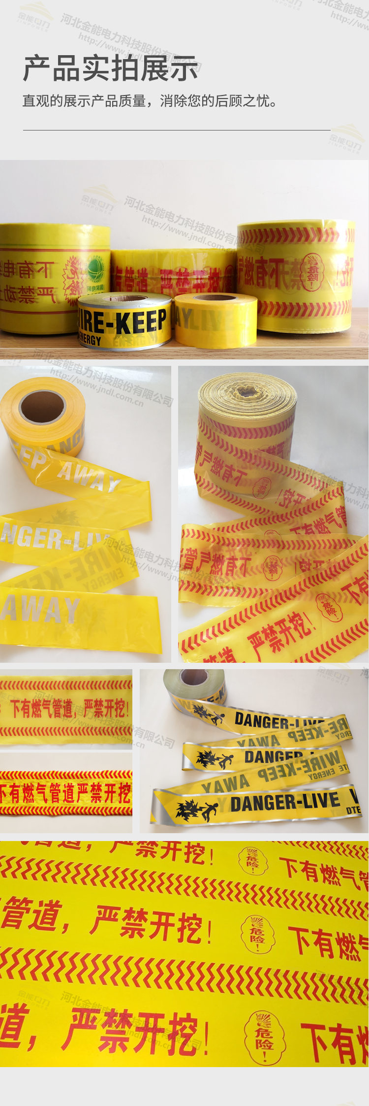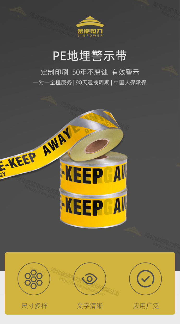 地埋式警示帶 下有電纜燃?xì)馐聚檸?PE燃?xì)夤艿罉?biāo)記帶可探測(cè)警示帶